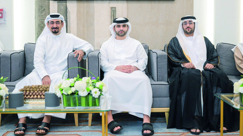 حضر سموّ الشيخ منصور بن محمد بن راشد آل مكتوم، رئيس مجلس دبي الرياضي، أمس، حفل الاستقبال الذي أقامه أحمد محمد رفيع الخزرجي، بمناسبة زفاف نجله محمد، إلى كريمة عمر أحمد القرشي، في مجلس الخوانيج بدبي.