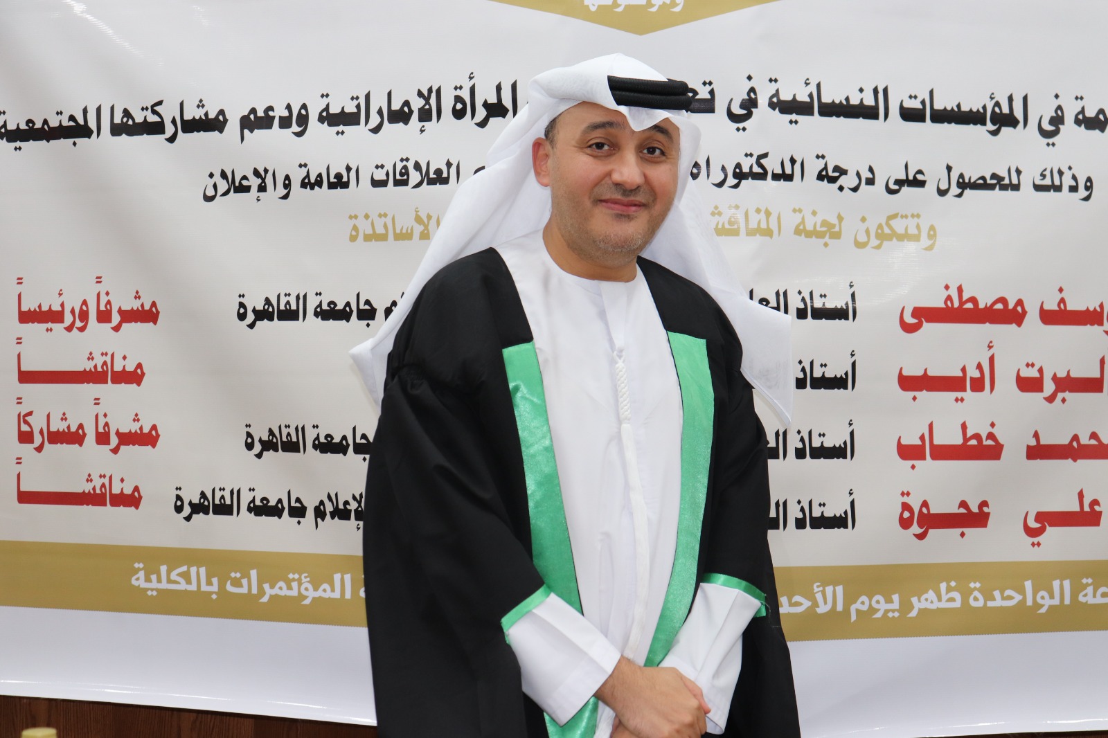 نال الخبير الإعلامي بالمجلس الاستشاري لإمارة الشارقة، الباحث إسلام الشيوي، درجة الدكتوراه بتقدير مرتبة الشرف الأولى من كلية الإعلام جامعة القاهرة، بعد مناقشة رسالته التي جاءت تحت عنوان "دور العلاقات العامة في المؤسسات النسائية في تعزيز تمكين المرأة الإماراتية ودعم مشاركتها المجتمعية".