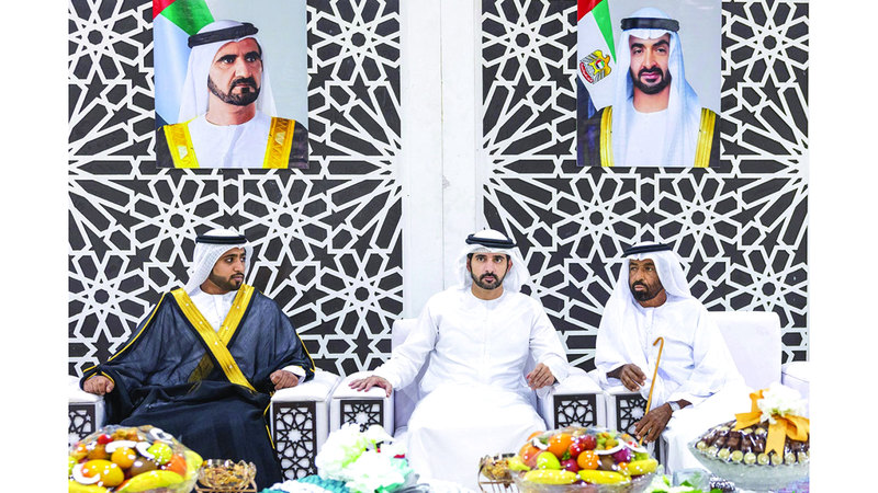 حضر سموّ الشيخ حمدان بن محمد بن راشد آل مكتوم، ولي عهد دبي نائب رئيس مجلس الوزراء وزير الدفاع رئيس المجلس التنفيذي لإمارة دبي، أمس، حفل الاستقبال الذي أقامته عائلة مطر محمد مطر بالضبيعه الكتبي، وعائلة الشريجي محمد بن معدن الكتبي، بمناسبة زفاف نجلهما سعيد إلى كريمة الشريجي محمد بن معدن الكتبي، في دبي.
