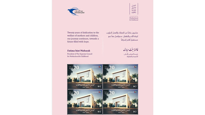 أصدر بريد الإمارات، بالتعاون مع المجلس الأعلى للأمومة والطفولة، طابعاً تذكارياً بمناسبة مرور 20 عاماً على تأسيس المجلس، تقديراً لدوره الرائد في دعم قضايا الأمومة والطفولة، وتعزيز الرفاه الاجتماعي في دولة الإمارات.
