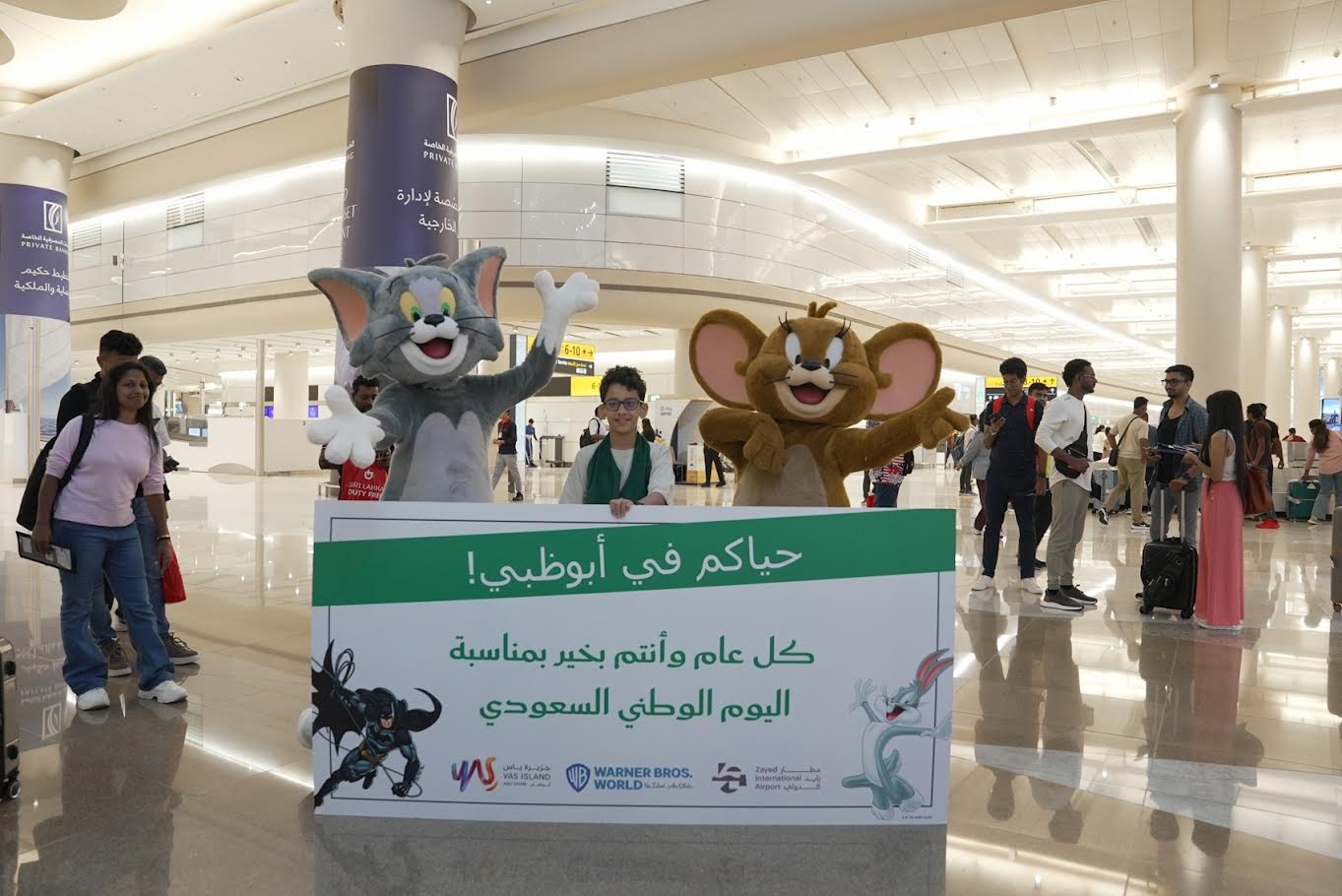 وتألقت صالة الوصول في المطار أجواء احتفالية مميزة، حيث استقبلت شخصيات عالم وارنر براذرز المحبوبة "توم آند جيري"، أولى الرحلات السعودية القادمة إلى العاصمة في مبادرة مميزة لاقت تفاعلاً واسعاً من المسافرين العائلات وصغارهم الذين حظوا باستقبال خاص، وحصلوا على حقائب ترحيبية تضم هدايا مميزة من عالم فيراري، وياس ووتروورلد، وعالم وارنر براذرز، وسي وورلد جزيرة ياس أبوظبي.