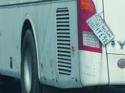 علق قائد حافلة لوحة أرقام تجارية بسلك كهربائي، ما جعلها غير ظاهرة، ولا يمكن التقاطها في حال ارتكاب قائدها مخالفة على الطريق. لذا يجب على الجهات المختصة مراقبة مثل هذه التصرفات من جانب قائدي المركبات لمخالفتهم، ومنع تكرارها.
