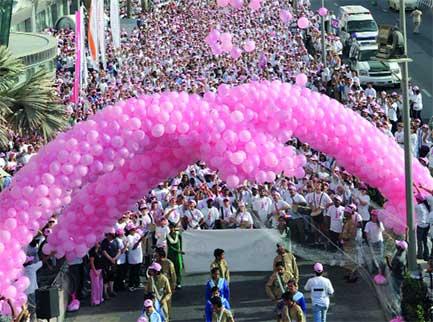 آلاف الشباب حرصوا على المشاركة في المسيرة للتوعية بمخاطر سرطان الثدي. تصوير: كريغ سكار
