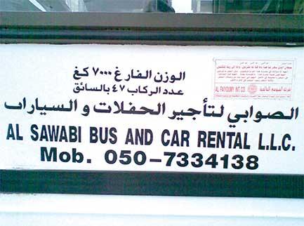 وضع صاحب شركة تأجير حافلات وسيارات لافتة عريضة كتب عليها «تأجير الحفلات» ولم يفرق بين الحافلات والحفلات، كما كتب كلمة سيارات من دون وضع النقاط على حرف التاء فصارت بلا معنى، ولا أحد يستطيع فهم الإعلان الا باللغة الانجليزية.