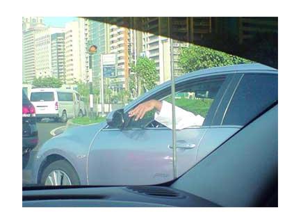 قاد شخص سيارته، وهو يدخن سيجارة، وكما يفعل كثيرون فقد وضع يده التي تمسكها خارج المركبة معرضاً الآخرين إلى الخطر، إضافة إلى أن هذا المظهر غير حضاري، ويجب على جهات الاختصاص مخالفة من يتصرفون بهذه الطريقة، لعدم تكرار ذلك مستقبلاً.