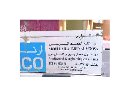 وضعت مؤسسة لوحة إعلانية فوق رصيف أحد الشوارع، تحمل اسم صاحب الشركة وعنوانه ورقم هاتفه، احتوت على كلمات كُتبت باللغة العربية خطأ، على الرغم من كتابتها صحيحة باللغة الإنجليزية، إذ كتبت «مهندسون معماريون ولتساريون»، والصحيح «مهندسون معماريون واستشاريون».
