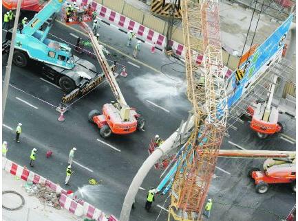 سقـوط رافـعـة لـ«متـرو دبـي» يعـطــل شــارع الشـيخ زايــد 7 ساعات
