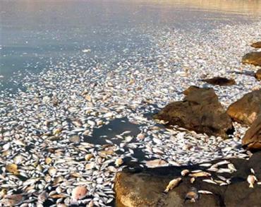 أسماك نافقة بسبب المد الأحمر الذي ضرب المنطقة الشرقية. تصوير: محمود منور