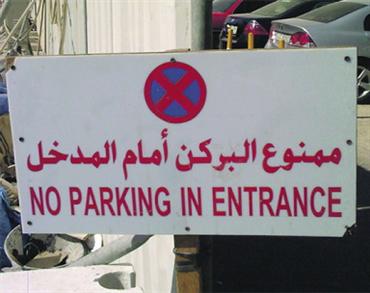 أمام أحد مشروعات المقاولات، وضعت لافتة باللغتين: العربية والإنجليزية، ولم يكتف واضعها بالجملة الإنجليزية وترجمتها إلى العربية، بل وضع كلمة إنجليزية في سياق الجملة العربية، وكأن اللغة العربية فقيرة في مصطلحاتها ولا يوجد فيها المقابل لتلك اللغة، ولا ندري لمصلحة من هذا التغريب الذي نراه يومياً، فبدلاً من أن يكتب: ممنوع الوقوف أمام المدخل، فقد كتب: ممنوع البركن أمام المدخل.