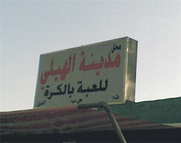 في مدينة العين الجميلة الهادئة علق محل لافتة تحير القارئ لها من الوهلة الأولى، حيث كتب عليها: «مدينة الهيلي للعبة بالكرة»، وكان المقصود: «مدينة الهيلي للعب بالكرة».