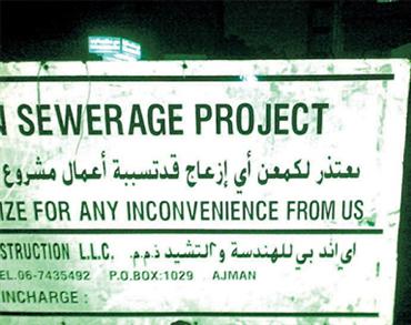 شركة هندسية وضعت لافتة تعتذر عما قد تسببه من إزعاج بسبب الأعمال التي تقوم بها، وكان من المفترض أيضاً أن تعتذر عن الأخطاء الكثيرة التي وقعت فيها بحق اللغة العربية، التي منها: «لكمعن، قدتسببة، التشيد».