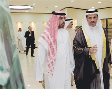 وزير الاقتصاد ومسؤول في غرفة تجارة أبوظبي خلال افتتاح مؤتمر المشروعات الصغيرة. تصوير: محمد حكيم