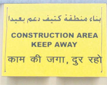 كتبت هذه اللافتة بثلاث لغات، والخطأ فقط في الجملة المكتوبة باللغة العربية، لافتة فعلاً تدعو للدهشة والوقوف أمامها بتمعّن، ماذا يقصد هذا الذي كتب الجملة باللغة العربية؟ هل هو عربي؟! حروف مكتوبة في شكل كلمات لا علاقة بينها، وطبعاً يجيء الحل عادة من قراءة اللافتة باللغة الإنجليزية!