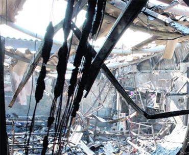 تم إنقاذ جميع العمــال وإجلاؤهم من مكان الحريق. تصوير: تشاندرا بالان