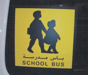 حافلة مدرسية وضعت لافتة تنبيهية، لكن كاتب اللافتة أبى أن يستخدم المفردات العربية الفصيحة، وجاء بدلاً منها بكلمات ركيكة فكتب: باس مدرسة، بدلاً من حافلة مدرسية؛ فماذا لو فسرنا «باس» بمعنى:«قبّل» هل تؤدي الغرض؟!