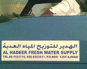 تحمل سيارة لافتة وتجوب بها الشوارع ولا أحد يتدخل لإيقاف الانتهاك الصارخ بحق اللغة العربية الذي تحمله هذه اللافتة، فقد كتب عليها: «الهدير للتوزيح المياه العدبة»، بدلاً: «الهدير لتوزيع المياه العذبة»، ولا ندري إلى متى سنظل نرى في شوارعنا ما يدمي قلوبنا حسرة على لغة القرآن الكريم؟!