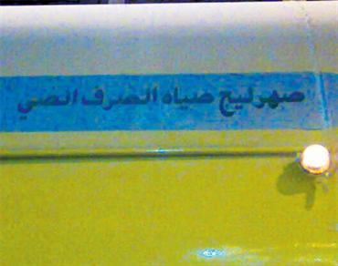 سيارة لنقل مياه الصرف الصحي كُتب عليها لافتة مكونة من أربع كلمات جاء الخطأ في ثلاث منها، فبدلاً من أن تكتب: صهريج مياه الصرف الصحي، جاءت كالتالي: «صهرليج صياه الصرف الصي».