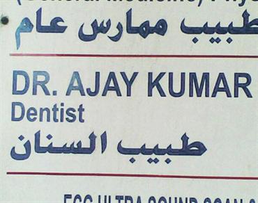مسلسل الانتهاكات مستمر، فمن وضع اللوحة يبدو أنه يسمعهم يقولون «سِناني بتوجعني» فكتب «طبيب السنان». السنان يا أهل الخير رأس الرمح المسنون فهل الأخ طبيب رماح؟ بالتأكيد لا. إذن لمَ لمْ يكلف نفسه عناء سؤال أي متخصص لغوي ليشرف على اللافتة التي وضعها ويكتب «طبيب الأسنان»، إذا كان لا يعرف الفرق بين السنان والأسنان؟!