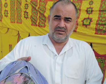 الأب يحمل حقيبة طفلته هدى . تصوير: محمد حنيف