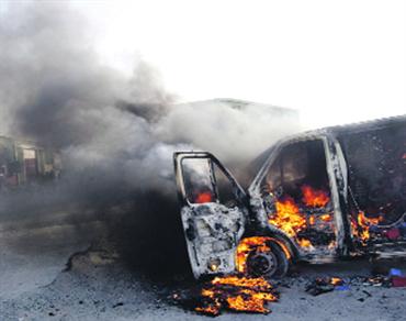 أتت النيران على سيارة نقل صغيرة أمس، اثناء سيرها في منطقة القوز الصناعية رقم 3 في دبي، ولم يسفر الحادث عن أية إصابات، فيما تولى افراد الدفاع المدني اطفاء النيران. وذكر مسؤول في شرطة دبي، أن سائق المركبة فوجئ باشتعال النيران في المركبة وحاول إخمادها ولكنه فشل وعندما وصلت سيارة الإطفاء إلى مكان الحادث كانت النيران تمكنت من كل أجزاء المركبة وأتت عليها، ويرجح أن يكون تماس كهربائي في اسلاك المركبة وراء الحادث.