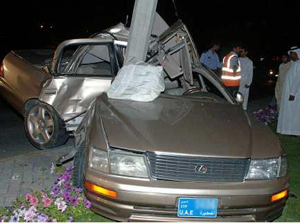 عناصر من الشرطة تتفقد موقع الحادث الذي حصل أمس على كورنيش كلباء وأدى لإصابة السائق. تصوير محمد منور