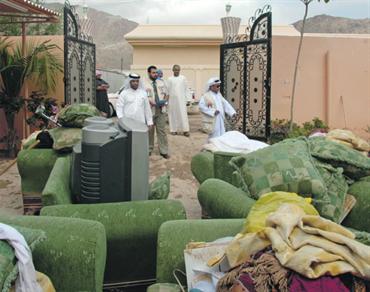 من جهته قال مدير عام وزارة الشؤون الاجتماعية، رئيس لجنة الإغاثة للنكبات والكوارث عبدالله راشد السويدي، الذي زار المنطقة المتضررة امس، إن الوزارة صرفت مساعدات مالية ضرورية لإغاثة المتضررين بموجب أحكام قانون الضمان الاجتماعي تبلغ 300 درهم للفرد الواحد يومياً، مشيراً إلى أن العدد الاجمالي لهؤلاء الأفراد بلغ 130 فرداً.