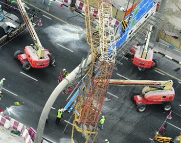 رافعة سقطت على شارع الشيخ زايد في2008. تصوير: دينيس مالاري