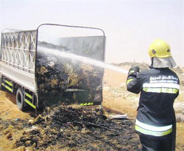 احتراق شاحنة وسط حفرة مخلفات في العين