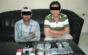 المتهمان وأمامهما بعض الهواتف المسروقة. من المصدر