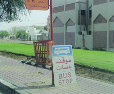 سقطت لافتة مكتوب عليها، موقف باص، على الرصيف في أحد شوارع منطقة الكويتات في العين، ووضعها أحد الأشخاص بجوار سلة نفايات، ولكن وجودها بهذه الطريقة لايفيد الركاب الذين يرغبون في صعود الباص، إضافة إلى تشويه المنظر الحضاري والجمالي للمكان، ولم تتدخل الجهات المعنية لإصلاحها منذ أسابيع.
