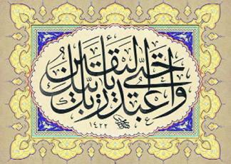 كتب الخطاط في هذه اللوحة الجميلة، الآية الكريمة {واعبـد ربك حـتى يأتيـك اليقـين}، وأطّرها على نحو أضفى على اللوحة جمالاً وإبرازاً.