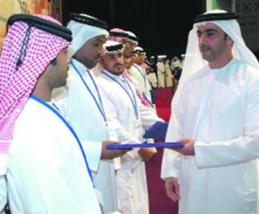 سيف بن زايد يوزّع الشهادات على الخريجين. من المصدر