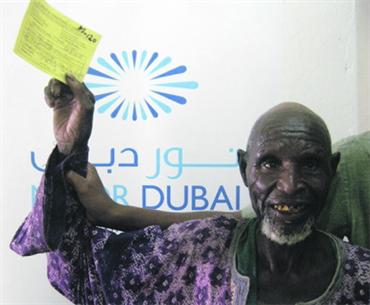وأضافت «استقبل أطباء (نور دبي) محمد، فتحدّث لهم عن وضعه المعيشي الصعب وعن الظلمة الدائمة التي يعيشها وكيف يحلم بأن يُبصر يوماً من الأيام لكي يُعيل نفسه ويعطي فرصة لابن أخيه ليتمكن من العمل وتحسين وضعه المعيشي وأن يتعلم مهنة يكسب عيشه منها».