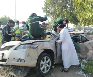 وكان بلاغ ورد إلى غرفة عمليات الشرطة يفيد بتدهور سيارة في شارع فرعي في مدينة خليفة (أ). وبعد تحرك الفرق المختصة، تبين أن إحدى الراكبتين كانت فاقدة الوعي، ومحشورة وسط هيكل سيارتها المتدهورة، فاستخدم الفريق المتخصص المنشار الآلي وقص الهيكل لإخراجها.