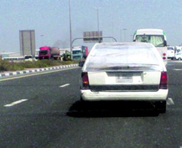 لصق قائد سيارة، بلاستيك على المركبة بدلاً من الزجاج الخلفي المكسور، وهذا التصرف مخالف لقوانين المرور، لأنه يعيق الرؤية الخلفية، ما يؤدي إلى وقوع حوادث على الطريق، إضافة إلى أنه تصرف غير حضاري، لذا يتعين على الجهات المعنية مخالفة مثل هذا السائق.