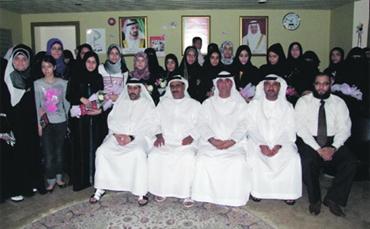 لقطة تجمع أوائل الفجيرة في الثانوية العامة بعد تكريمهم أمس. الإمارات اليوم