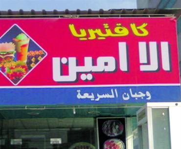 كتب أحد مطاعم الوجبات السريعة لافتة فيها كلمتان خاطئتان، الأولى «الا امين»، بدلاً من «الأمين»، والثانية «وجبان»، بدلاً من وجبات، ما يدل على عدم الاهتمام باللغة العربية.