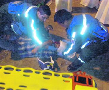 الفريق الطبي قام بإسعاف المصاب قبل نقله إلى المستشفى. من المصدر