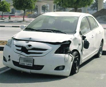 ترك سائق سيارته التي تعرّضت لحادث تصادم في موقف عام بالقرب من إحدى الحدائق في دبي، من دون أن يتم نقلها إلى المكان المخصّص لإصلاح السيارات، ما يشوّه المنظر الجمالي للمكان، لذا يتعين على الجهات المعنية مخالفة أصحاب مثل هذه السيارات.