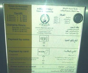 كتبت جهة حكومية لافتة توضح أسعار أماكن صف السيارات، فجاء في أحد البنود أن سعر صف السيارة لساعة واحدة يبلغ «1 دراهم».