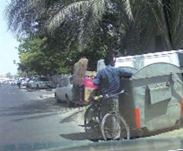 لاتزال ظاهرة تجميع العلب والعبث في حاويات القمامة من قبل أشخاص يحملون جنسيات آسيوية منتشرة في بعض مدن الدولة، إذ نرى بعضهم يعبث بحاويات القمامة بحثاً عن علب فارغة للمشروبات الغازية، ما يشوّه المنظر الحضاري للمكان، لذا نتمنى أن يتم القضاء عليها.