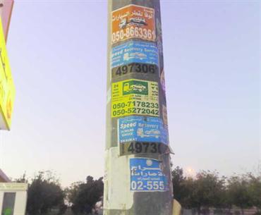 أعمدة الإنارة على بعض الطرق الرئيسة ضحية للإعلانات المجانية، وخصوصاً الإعلانات التي تندرج في باب خدمات الطوارئ مثل قطر السيارات، أو إصلاح الأعطال المفاجئة، أو «البناشر». ربما يتعين على البلدية اتخاذ خطوة إيجابية نحو هذه الظواهر، بدلاً من التوقف عند الشعور بضرورة إزالتها، ومحاسبة أصحابها. وعلى سبيل المثال، فقد يمكنها تخصيص «بورد» إعلاني بأسعار مناسبة تضمن تحقيق أهداف الأطراف المعنية كافة.