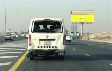 قاد سائق مركبته على الطريق، على الرغم من تعرضها لحادث تصادم وتحطم زجاجها الخلفي وحاجتها إلى إصلاح، ما يشوه المنظر الحضاري، لذا يتعين على الجهات المختصة مراقبة الطرق لفرض غرامات على السائقين المخالفين الذين لا يلتزمون بقوانين المرور.