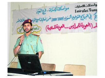وقال مدير فرع الإعلام والعلاقات العامة في قسم مرور العين النقيب خميس محمد الكعبي، إن «هذه المحاضرات تأتي متزامنة مع عودة الطلاب للمدارس انطلاقاً من الحرص على سلامتهم من حوادث الدهس ومن أجل عام دراسي خالٍ من الحوادث والتقليل منها».