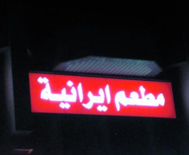 كتب مطعم على لوحة كبيرة مضاءة اسمه، ومع أن الأسماء غالباً لا تحتوي على أخطاء، إلا أن المطعم تفرّد بهذا، إذ اسمه «مطعم ايرانية» بدلاً من «مطعم إيراني».