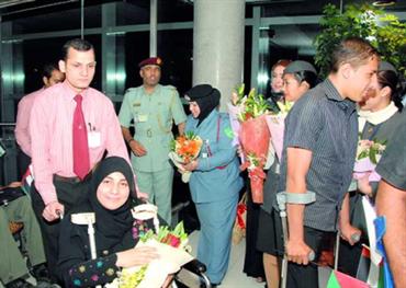 وأعربوا عقب وصولهم واستقبالهم بحضور عدد من المسؤولين وضباط الشرطة ومراكز وزارة الداخلية لذوي الاحتياجات الخاصة، عن امتنانهم لدولة الإمارات التي تعهدت بعلاجهم وتأهيلهم.