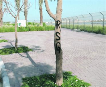 لم تسلم الأشجار من الأذى، إذ كتب أحد الأشخاص على شجرة باللون الأسود حروفاً إنجليزية، ما شوّه منظرها، ولذا يتعين على الجميع المحافظة على جمالية الشوارع، وأن يلتزموا بالسلوك الحضاري، حفاظاً على المظهر الجمالي لشوارع الدولة.