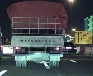 أخفى سائق شاحنة لوحة مركبته خلف الحاجز الحديدي، من دون أن يلتفت الى أن ذلك يعتبر مخالفاً للقانون المروري، إذ لا يمكن لأجهزة الرادار رصدها إذا ارتكبت مخالفة مرورية.
