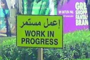 عُلقت اللافتة في حديقة عامة، لتخبر مرتاديها أن «العمل مستمر»، ولكن، جاء فيها «إعمل مستمر»، ضاربة باللغة العربية عرض الحائط.
