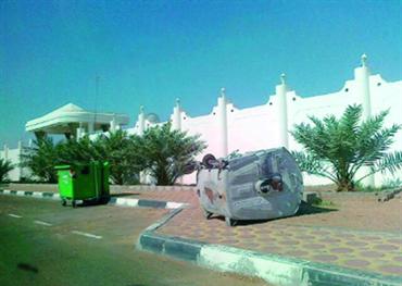 تسببت الأمطار والرياح التي شهدتها الدولة خلال الأيام الماضية في انقلاب حاوية قمامة على الرصيف، من دون أن تتدخل الجهات المختصة لإعادتها إلى وضعها الطبيعي، حتى يستفيد منها سكان المنطقة، لذا يتعين التأكد من وجود هذه الصناديق في مكانها.